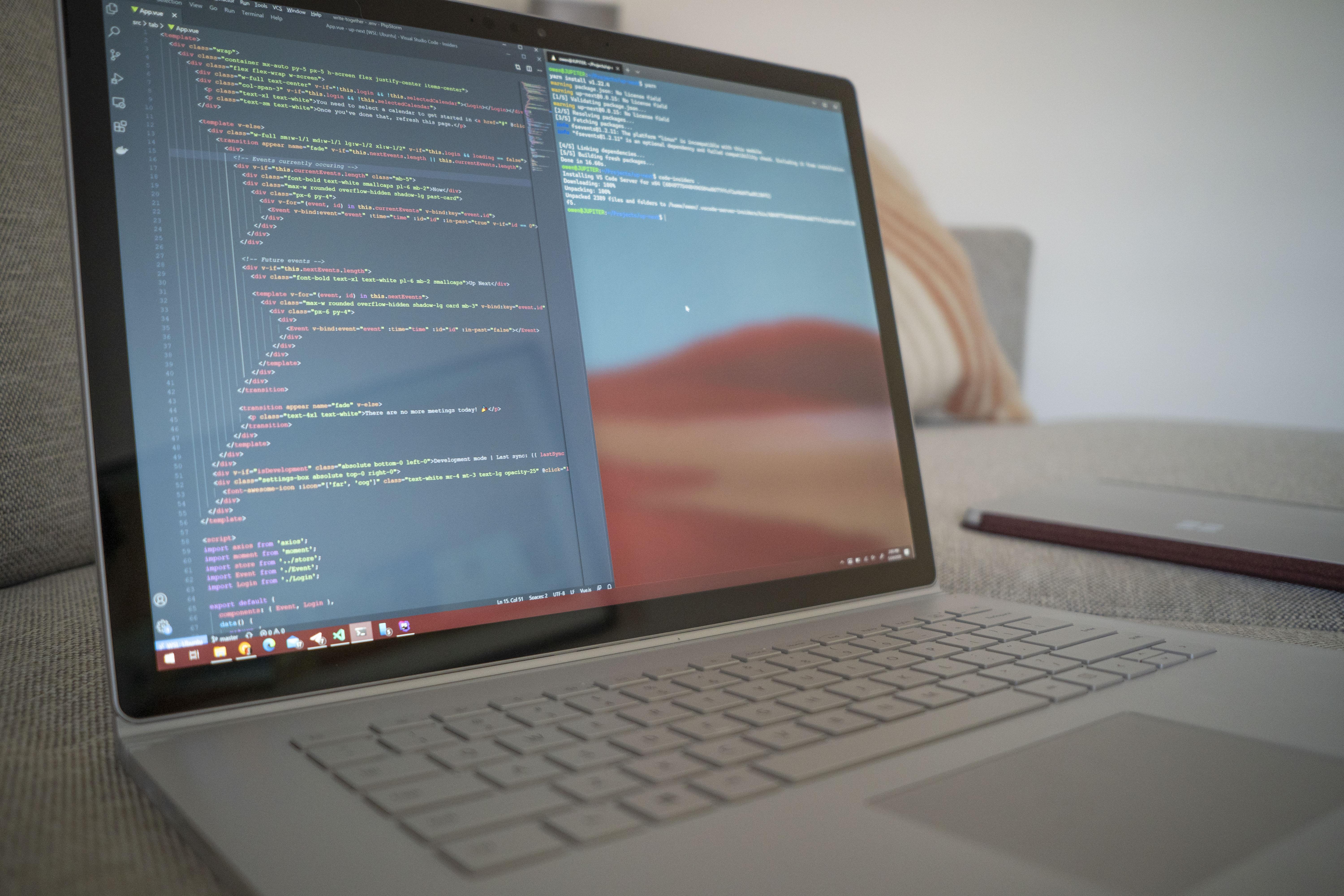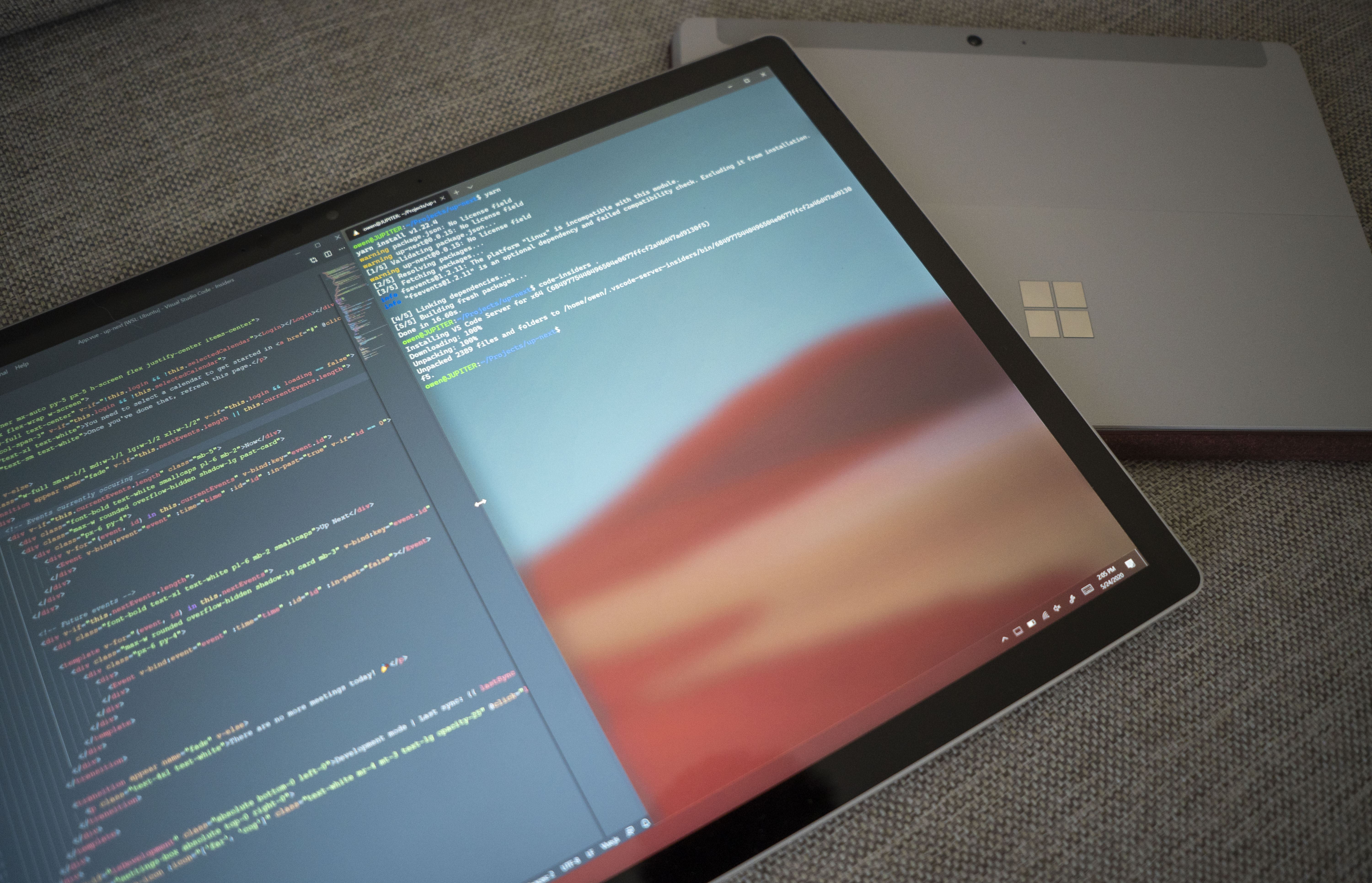 On the Surface Book 3, WSL 2 is the fulfillment of the 'Linux on Windows' dream that Microsoft first touted three years ago. I'm able to run my full development workflow, without compromises or workarounds, and just get shit done. The two types of codebase I work on right now are a medium-sized Laravel PHP site, which leverages a number of Docker containers for the development environment, and a NodeJs/Vue codebase for a Chrome extension I'm building.